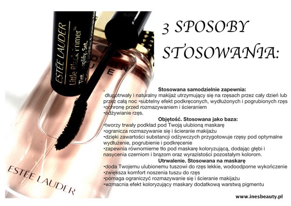 Moja historia rzęsowa jest dość długa, nie będę Was zanudzać opowieścią ale pokuszę się o kilka zdań niemniej jednak. Często pytacie mnie w komentarzach jaki tusz używam , czy hoduję rzęsy na jakiejś odżywce…. Otóż, dwa lata temu skusiłam się na odżywkę Revitalash, podczas 3 miesięcznego używania rzęsy rosły jak na drożdżach. Było cudownie… długie, gęste. Podczas urlopu wakacyjnego po tych 3 miesiącach używania postanowiłam chwilę odpocząć i nie używać jej. Pierwszy tydzień był ok, w następnym zaczął się koszmar! Rzęsy leciały na potęgę, przerzedziły się tak ,że żadna maskara nie dawała sobie rady aby jako taki im nadać wygląd. Byłam zrozpaczona tym bardziej, że nigdy nie miałam większych problemów z rzęsami. Została mi może połowa. Po powrocie z urlopu , natychmiast przystąpiłam do używania Revitalash aby odzyskać to co straciłam. Powoli wszystko zaczęło wracać do normy ale wiedziałam ,że dłużej już nie chcę jej używać. Skusiłam się na odżywkę Maximizer Dior odstawiając zupełnie Revitalash. Moje rzęsy po 2 miesiącach wróciły do dobrej formy. Z każdym kolejnym miesiącem używania Maximizera było coraz lepiej. Dziś moje rzęsy są w dobrym stanie , nie wylatują , są gęste i ładnie lśnią same z siebie. Już od zapowiedzi Estee Lauder bardzo byłam ciekawa nowości jaką marka zaproponowała , ESTEE LAUDER LITTLE BLACK PRIMER. Właściwości odżywcze , wykończenie wodoodporne ale także noszenie solo tego kosmetyku mocno mnie zainteresowało.