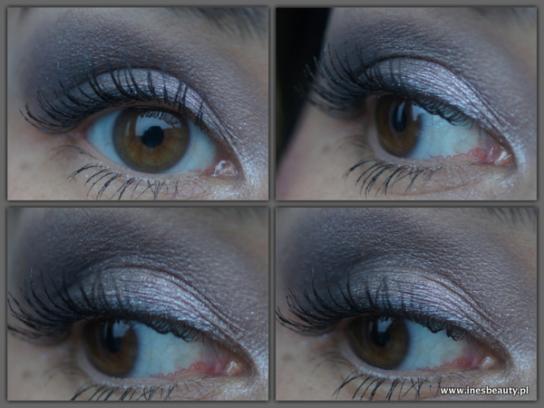Paletka ta jest idealnym produktem na dzień i na wieczór, świetnie się sprawdzi podczas wyjazdów ze względu na zawartość i cienie i róż ale także dlatego ,że kompozycja kolorystyczna pozwala na zabawę makijażem i dopasowanie pod okoliczność . Na zdjęciach poniżej zobaczycie jak szybko zmieniałam makijaż dokładając i rozcierając czarny cień w zewnętrznym kąciku oka i w załamaniu, baza makijażu to makjiaż ze zdjęć powyżej .