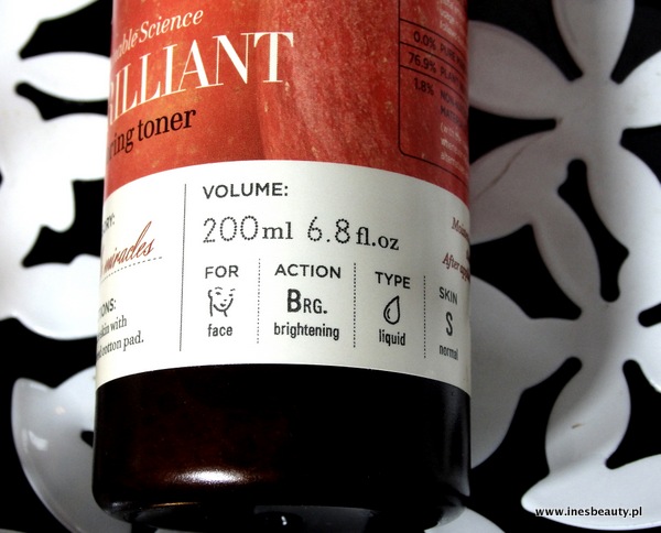 BRILLIANT RESTORING TONER zamknięty jest w plastykowej butelce o pojemności 200ml. Herbaciany kolor kosmetyku o równie pięknym , jabłkowym zapachu co wyżej wspominany żel do oczyszczania twarzy . To już moje kolejne opakowanie , a w zapasie jeszcze jedno! Taka ilość mówi sama za siebie ! Kocham ten tonik. Świetnie odświeża cerę, zmiękcza ją i rozświetla. Każdy kosmetyk pielęgnacyjny jaki stosuję w dalszych krokach wchłania się idealnie. Jest to kosmetyk , który zaliczam do odkryć roku 2014 ! Polecam, polecam , polecam !