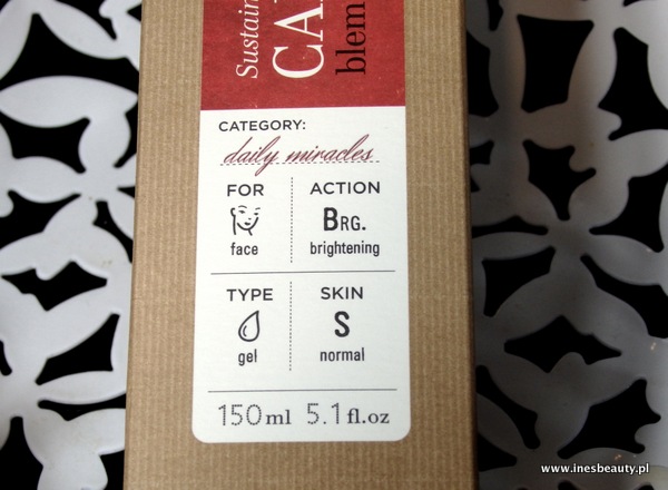 CALMING BLEMISH CLEANSER zamknięty jest w tubie o pojemności 150ml. Średnio gęsta konsystencja o przepięknym zapachu, w którym dominuje soczyste jabłko doskonale rozprowadza się na twarzy . Po kontakcie z wodą delikatnie się pieni. Kosmetyk ten bardzo dobrze doczyszcza cerę z resztek makijażu i sebum. Nie przesusza skóry i nie podrażnia. Skóra po użyciu tego żelu jest wygładzona i rozświetlona. Jedyny minus jakiego się dopatruję w tym żelu to forma zakrętki. Zdecydowanie bardziej wolałbym aby opakowanie miało inną formę podania kosmetyku.Ten żelu u mnie stoi na półce pod prysznicem , wolałabym aby produkt był zamknięty w opakowaniu z pompką lub choć z zamknięciem na klik. Poza tym nie ma żadnych minusów. Ze względu na działanie przymykam oko na tą formę podania 😉