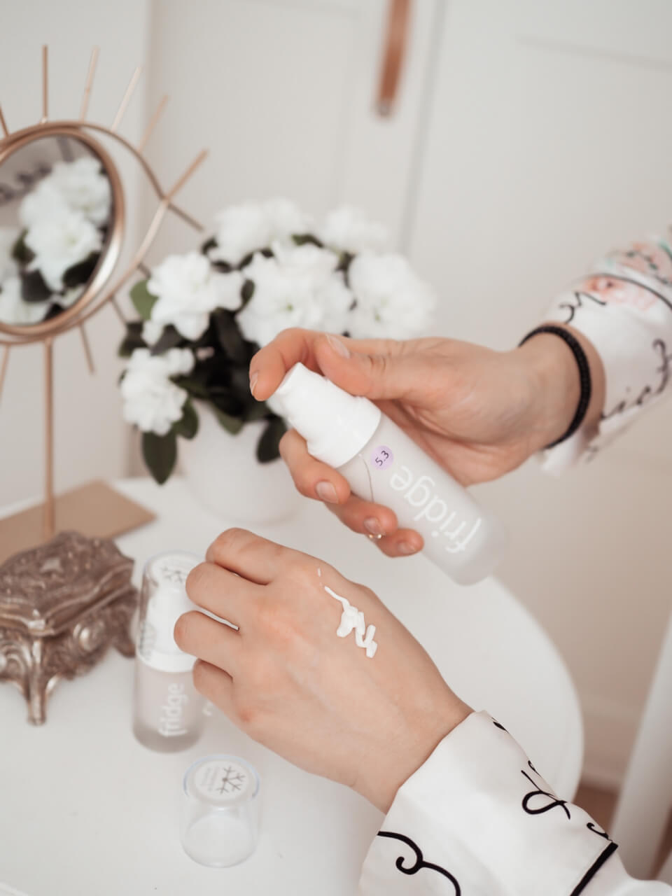 Kosmetyki przechowuje się w lodówce ze względu na szczególny skład – ale ich schłodzona temperatura sama w sobie niesie wielkie korzyści dla skóry. Schłodzony produkt energetyzuje, poprawia krążenie, redukuje obrzęki i usuwa zaczerwienienia. Ale również świetnie odpręża i relaksuje!